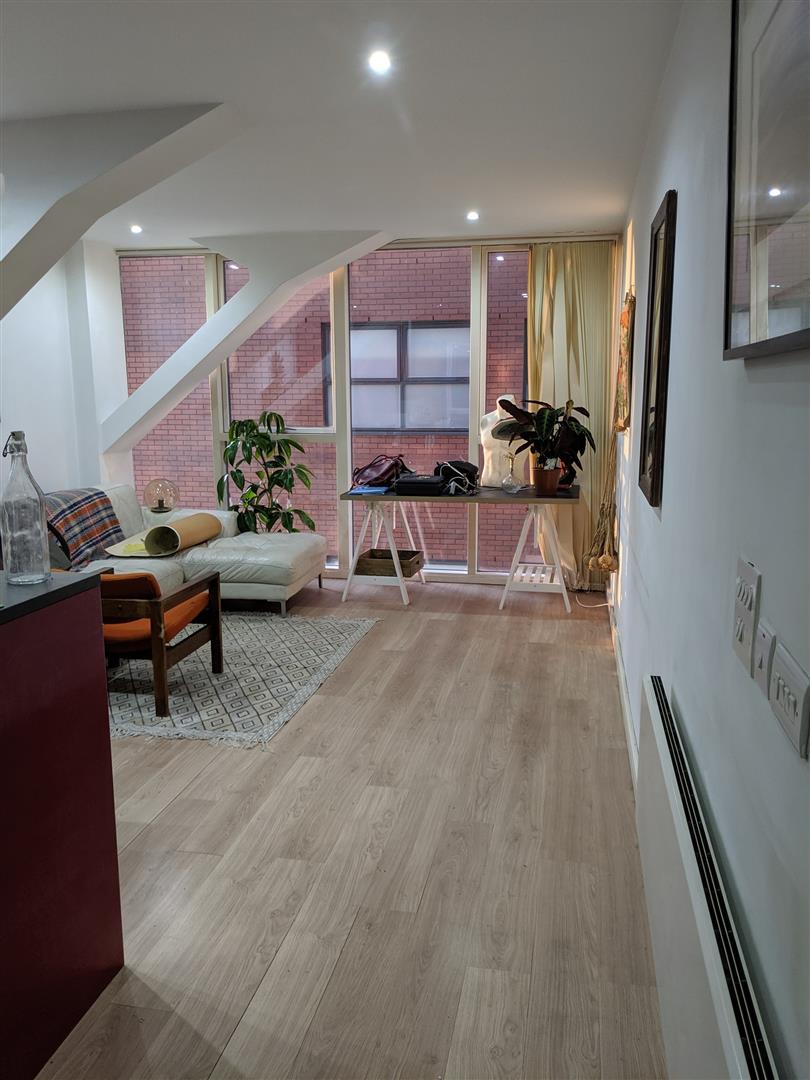 The apartment comprises of a hallway leading to open plan living area with floor to ceiling windows and low maintenance wooden flooring throughout. Modern attractive kitchen with integrated appliances. Double bedroom with built-in wardrobe and ample space for a vanity unit etc. Well equipped bathroom with shower over bath.